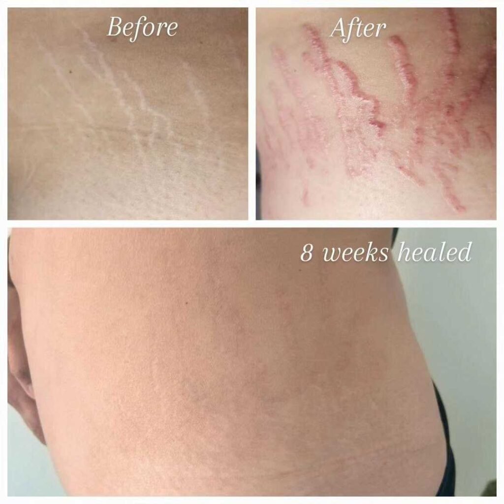 Though neocollagenesis (the production of new collagen) can take several weeks, it is not abnormal to notice an improvement in the quality and appearance of your skin within the first 24 hours. After 2-3 treatments a thicker more robust, collagen filled cellular matrix will produce more consistent and noticeable improvement. And 6 or more treatments may be recommended for scarring, laxity and wrinkles.